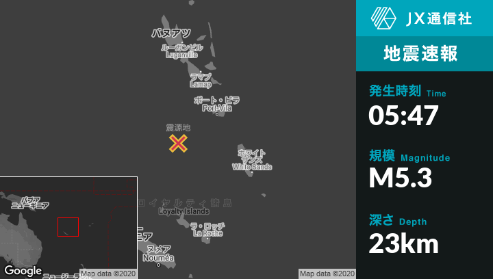 | 震源地 | バヌアツのPort-Vilaから西南西155kmの地点 |