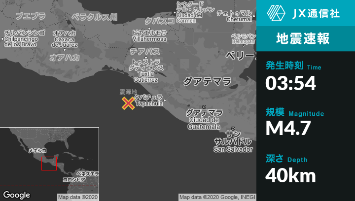 | 震源地 | メキシコのEl Palmarcitoから南西98kmの地点 |