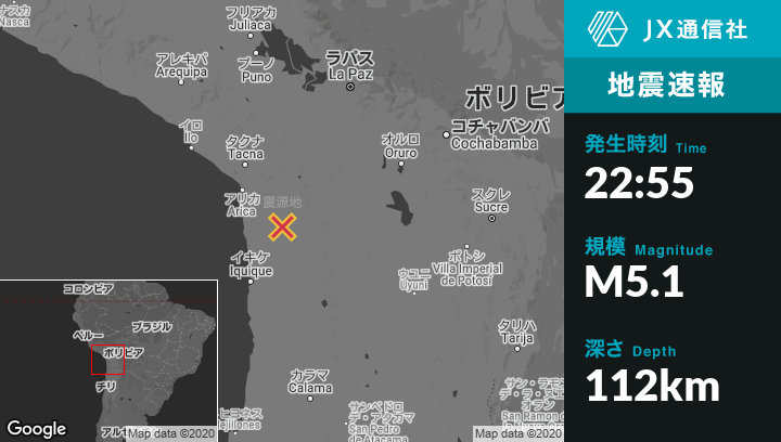 | 震源地 | チリのAricaから南東107kmの地点 |