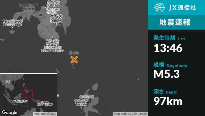 | 震源地 | フィリピンのSaranganiから東南東176kmの地点 |