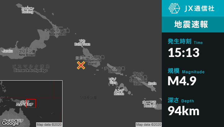 | 震源地 | パプアのPangunaから西南西105kmの地点 |