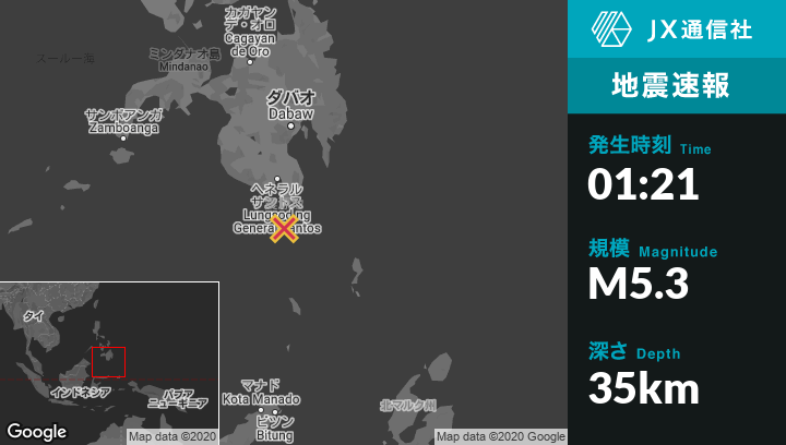 | 震源地 | フィリピンのSaranganiから南西23kmの地点 |