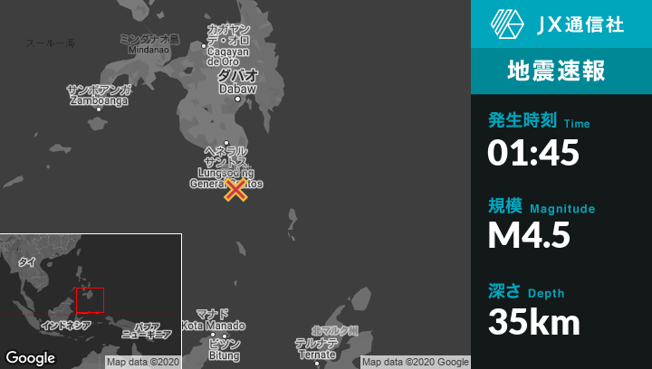 | 震源地 | フィリピンのSaranganiから南南西33kmの地点 |
