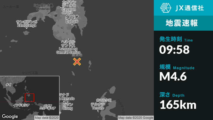 | 震源地 | フィリピンのSaranganiから南南東101kmの地点 |