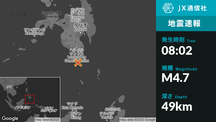 | 震源地 | フィリピンのSaranganiから南西39kmの地点 |