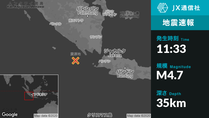 | 震源地 | インドネシアのBandar Lampungから西南西176kmの地点 |
