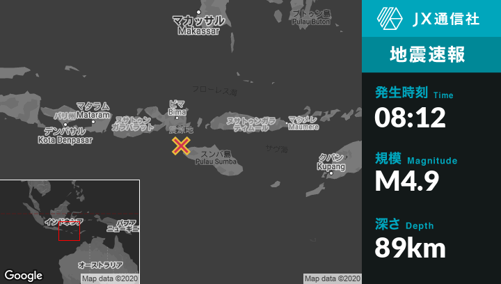 | 震源地 | インドネシアのBimaから南南東84kmの地点 |