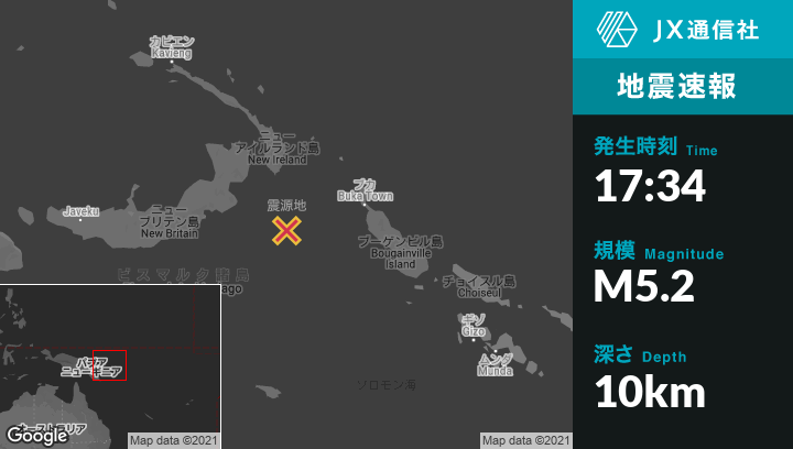 1月02日 17:34頃、パプアのKokopoから南南東187kmの地点でM5.2の地震がありました。