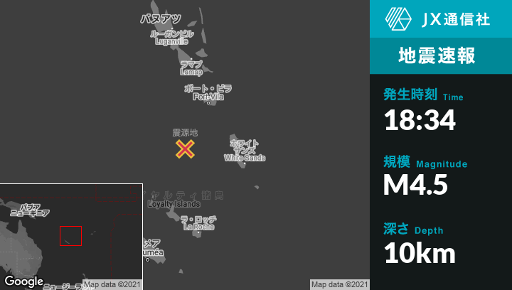 | 震源地 | バヌアツのPort-Vilaから南南西154kmの地点 |