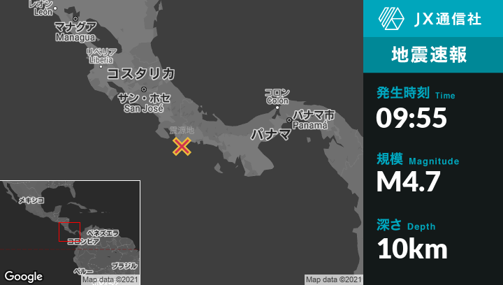| 震源地 | パナマのPuerto Armuellesから西南西3kmの地点 |