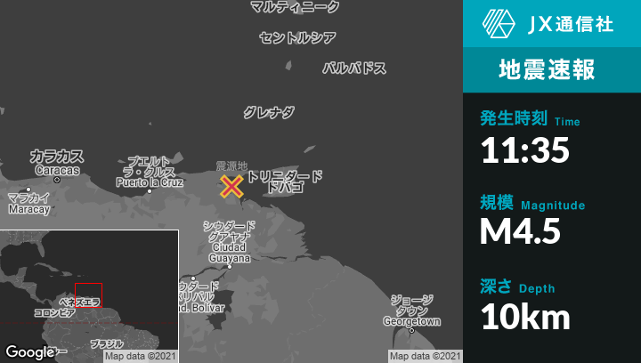 | 震源地 | ベネズエラのGüiriaから西南西35kmの地点 |