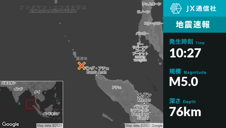 | 震源地 | インドネシアのSabangから西北西124kmの地点 |