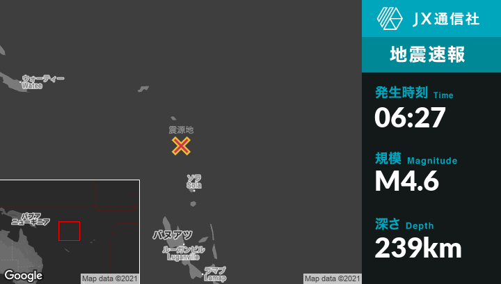 | 震源地 | バヌアツのSolaから北北西171kmの地点 |