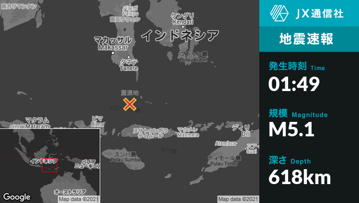 | 震源地 | インドネシアのLabuan Bajoから北北東138kmの地点 |