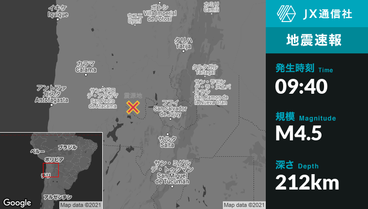 | 震源地 | アルゼンチンのSan Antonio de los Cobresから北西87kmの地点 |