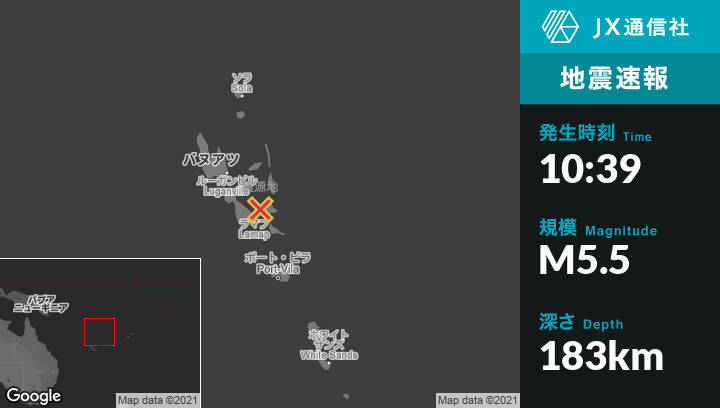 | 震源地 | バヌアツのLakatoroから東56kmの地点 |