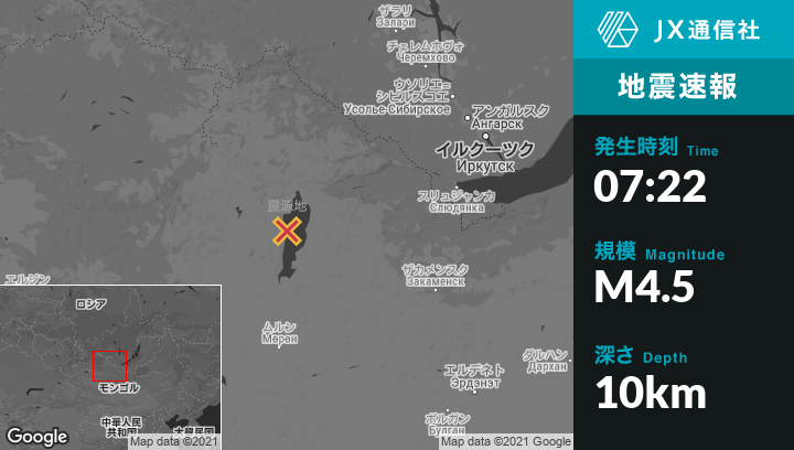 | 震源地 | モンゴルのTurtから南南西41kmの地点 |