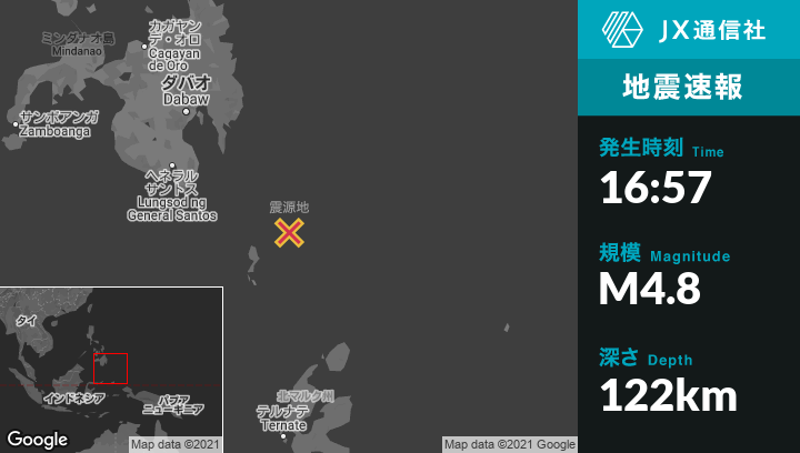 | 震源地 | フィリピンのPondaguitanから南東215kmの地点 |