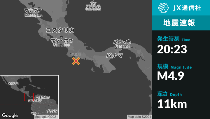 | 震源地 | パナマのPuerto Armuellesから西南西16kmの地点 |