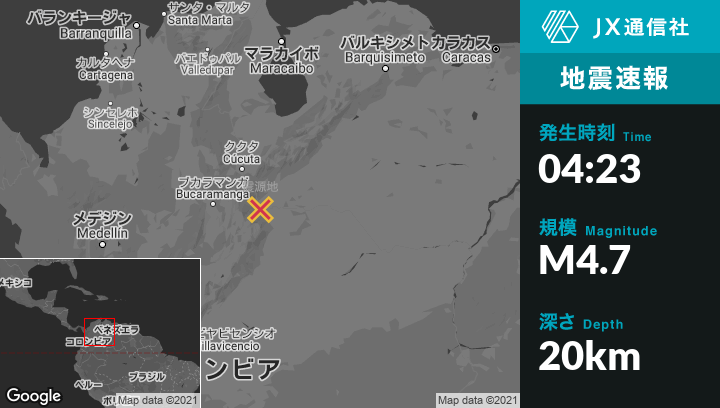 | 震源地 | コロンビアのCubaráから北12kmの地点 |