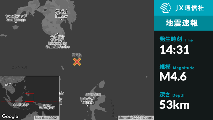 | 震源地 | フィリピンのSaranganiから南東186kmの地点 |