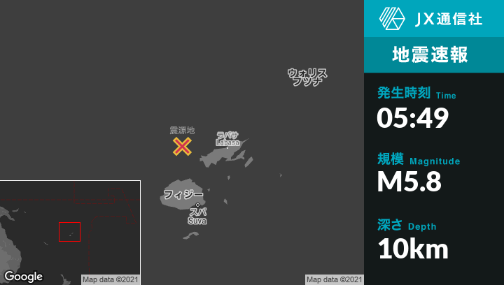 2月03日 05:49頃、フィジーのBaから北144kmの地点でM5.8の地震がありました。