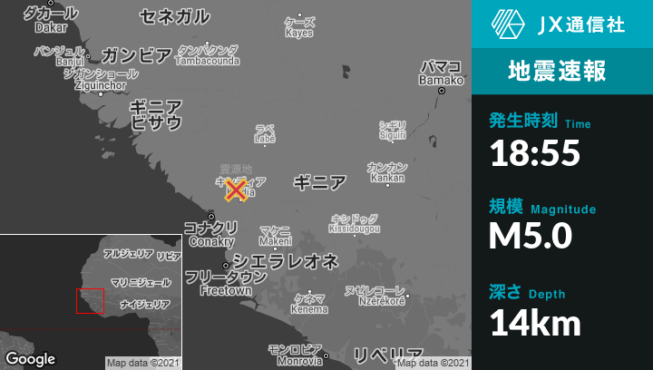 | 震源地 | ギニアのTondonから東39kmの地点 |