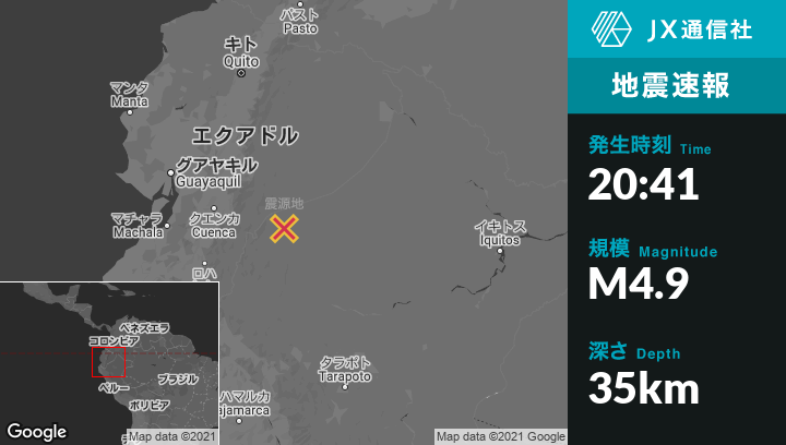 | 震源地 | エクアドルのSucúaから南東102kmの地点 |