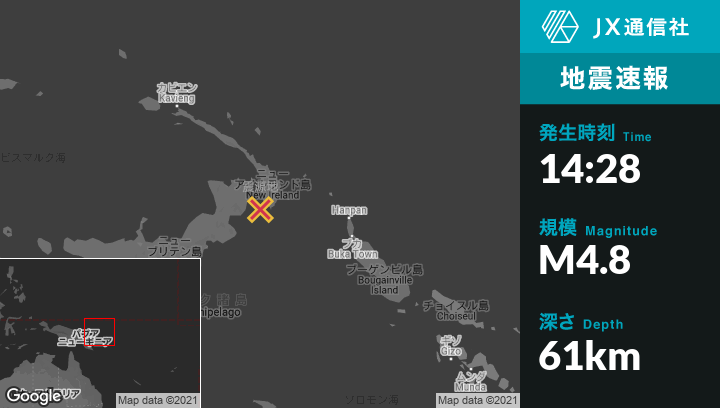 2月04日 14:28頃、パプアのKokopoから南東59kmの地点でM4.8の地震がありました。