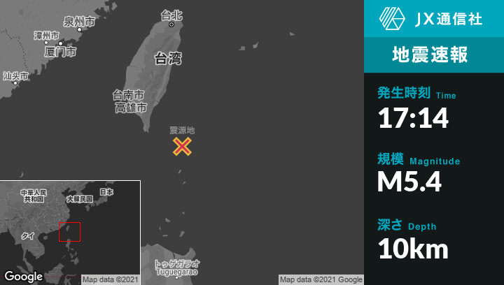 | 震源地 | 台湾のHengchunから東南東126kmの地点 |