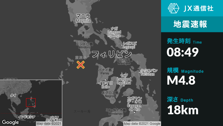 | 震源地 | フィリピンのSanta Teresaから南西49kmの地点 |