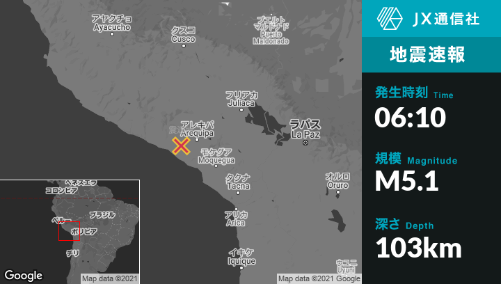 | 震源地 | ペルーのSanta Rita de Siguasから東北東4kmの地点 |