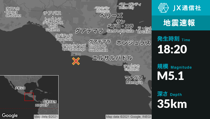 | 震源地 | グアテマラのLa Gomeraから南南西60kmの地点 |