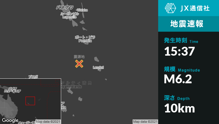 | 震源地 | バヌアツのPort-Vilaから南南西147kmの地点 |