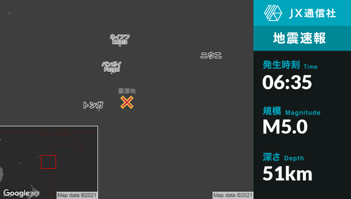 | 震源地 | トンガの‘Ohonuaから東北東140kmの地点 |