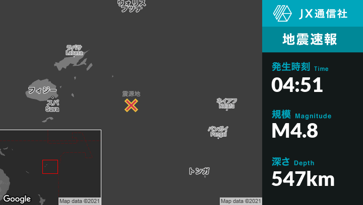 | 震源地 | フィジーのLevukaから東268kmの地点 |
