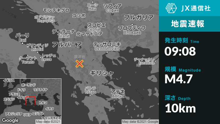 | 震源地 | ギリシャのKónitsaから東北東18kmの地点 |