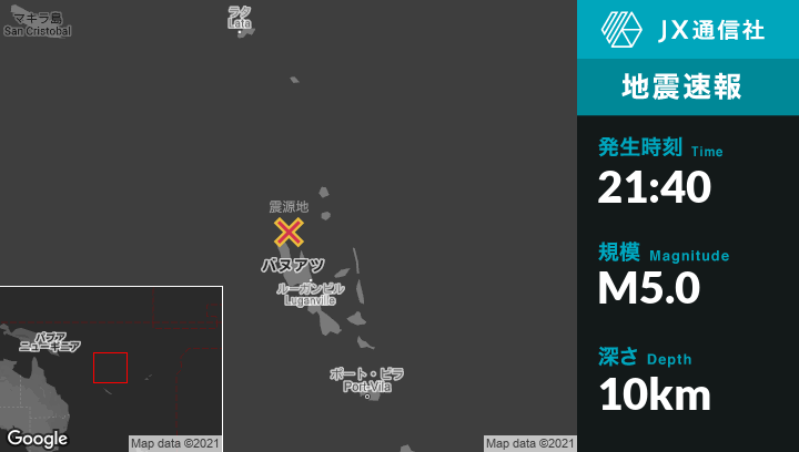 | 震源地 | バヌアツのPort-Olryから北北西71kmの地点 |
