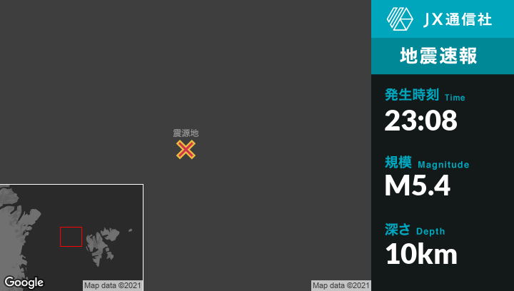 | 震源地 | スバールバル諸島およびヤンマイエンのLongyearbyenから西北西297kmの地点 |