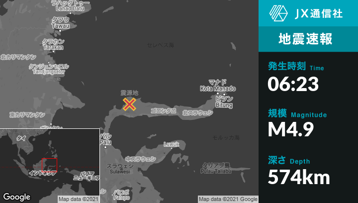 | 震源地 | インドネシアのGorontaloから西北西245kmの地点 |