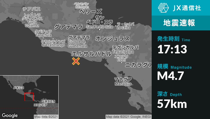 | 震源地 | エルサルバドルのAcajutlaから南29kmの地点 |