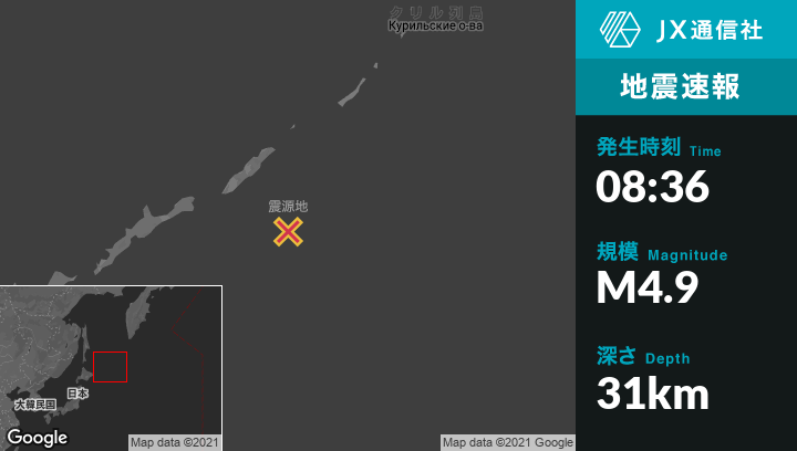 3月26日 08:36頃、ロシアのKuril’skから東224kmの地点でM4.9の地震がありました。