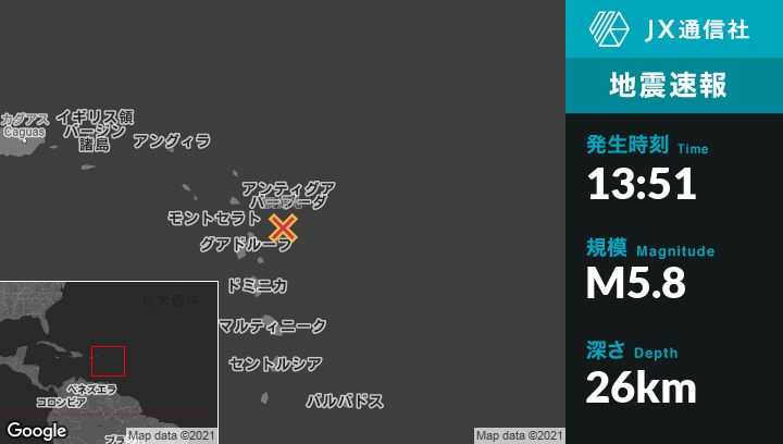 | 震源地 | グアドループのBeauséjourから北北東49kmの地点 |