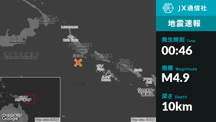 | 震源地 | パプアニューギニアのPangunaから南南西117kmの地点 |