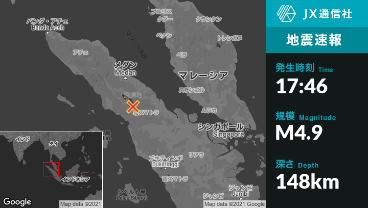 | 震源地 | インドネシアのParapatから南南東21kmの地点 |