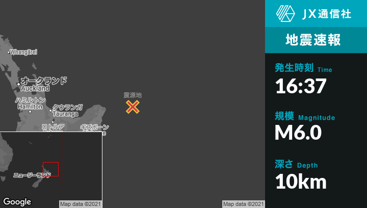 | 震源地 | ニュージーランドのGisborneから北東193kmの地点 |