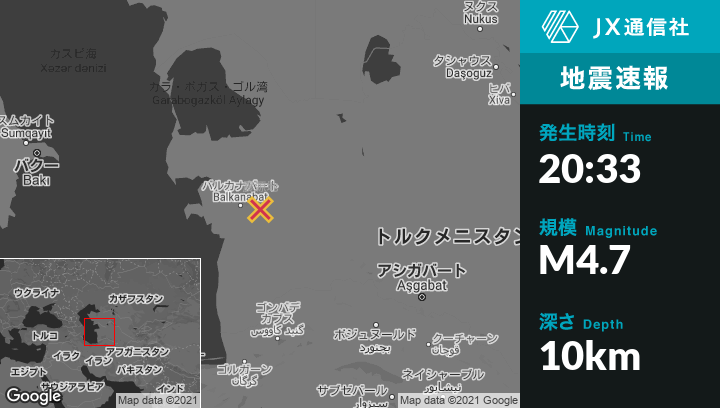 | 震源地 | トルクメニスタンのBalkanabatから東36kmの地点 |