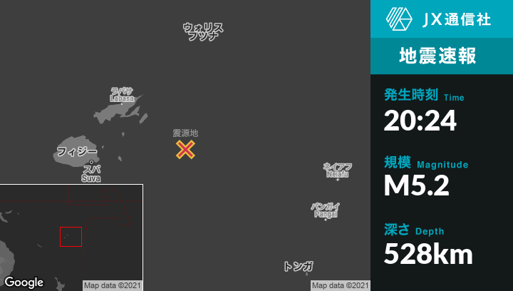 | 震源地 | フィジーのLevukaから東北東217kmの地点 |