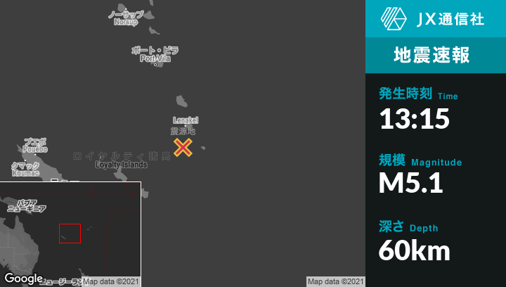 | 震源地 | バヌアツのIsangelから南57kmの地点 |