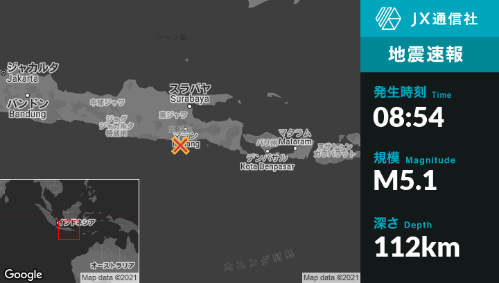 | 震源地 | インドネシアのSumberpucungから南21kmの地点 |
